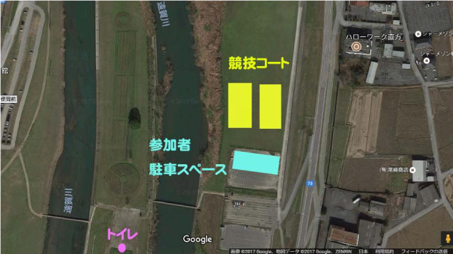 ●アクセス | 九州自動車道「八幡IC」出口より国道200号線を南下、 県道28号、73号線を経由してハローワーク直方を過ぎたら河川敷に下りて会場。 |